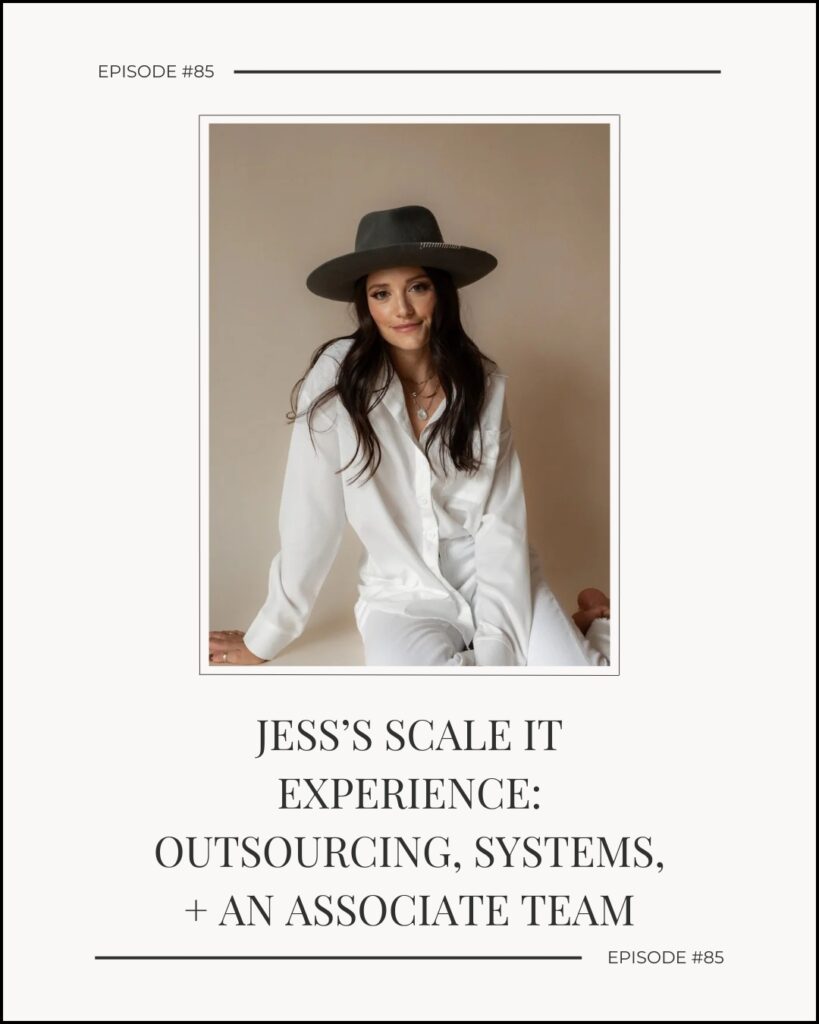 In this episode, I’m sitting down with Jess, one of my Scale It graduates who transformed her thriving-but-exhausting photography business into a sustainable model with an associate team, a full outsourcing crew, and systems that gave her freedom when she needed it most. Jess specializes in intimate weddings with 30 guests or less, and she’s not just a photographer—she’s also a planner and day-of coordinator for her couples. Her story is a perfect example of what it looks like to build a business that truly runs without you.