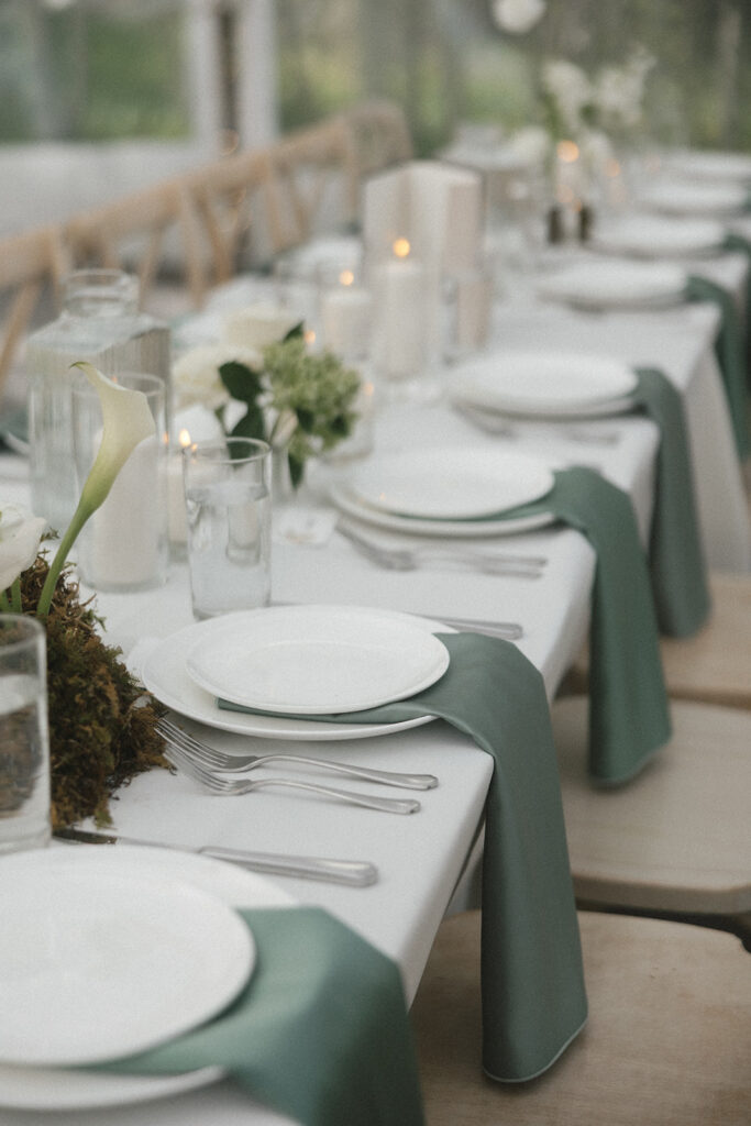 You can say “I do” while standing in the lush forest, surrounded by loved ones, before heading to the stunning outdoor tented reception space (that you have so much creativity to play around with) to continue the celebration. When you book your wedding here, you will have private access to their entire property!