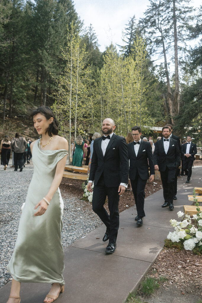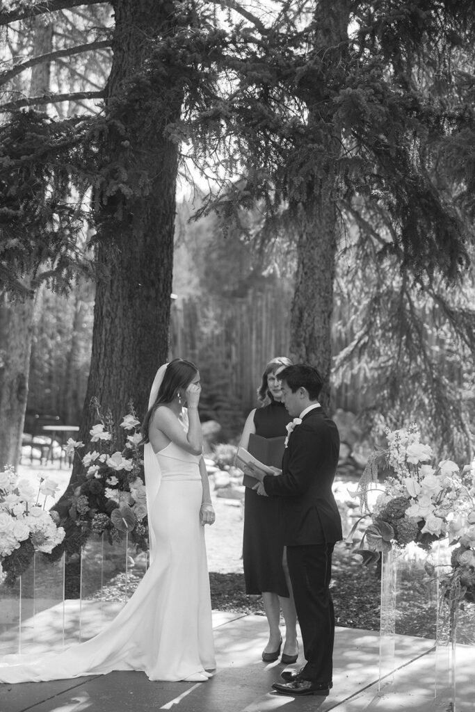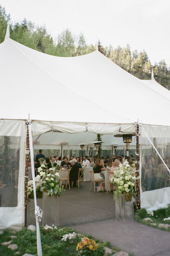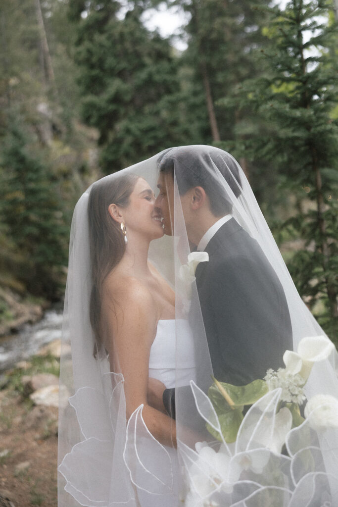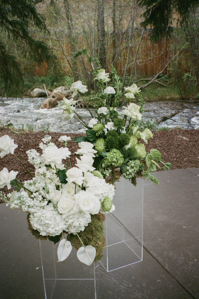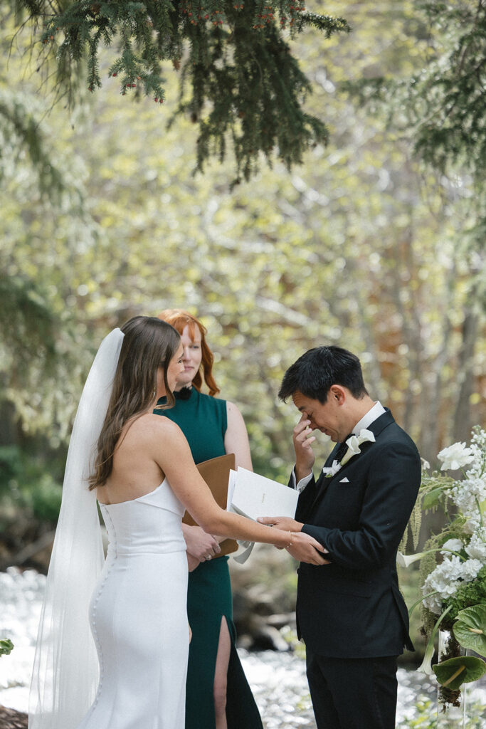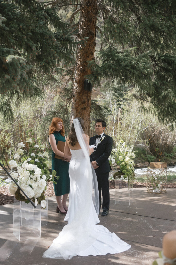 Blackstone Rivers Ranch Summer Wedding in Idaho Springs, Colorado is the perfect destination for a wedding. Featuring a beautiful venue, outdoor tent, the rushing river, and tall trees with surrounding mountain views, you can’t go wrong.