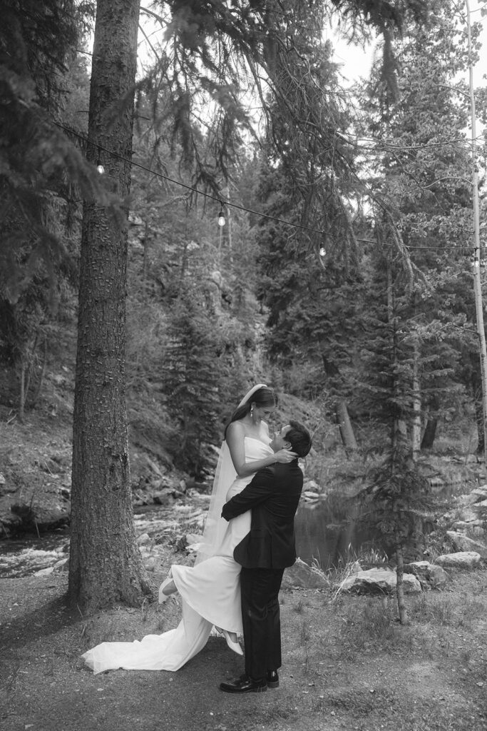 Blackstone Rivers Ranch is a boutique wedding venue located in Idaho Springs, about 35 minutes west of Denver, Colorado. This rustic chic ranch is the perfect place to celebrate your wedding no matter the season of the year. It offers the best of both worlds, surrounded by a forest on a riverfront property with mountain views, and getting up to panoramic mountain views is only about 10-15 minutes up the road!