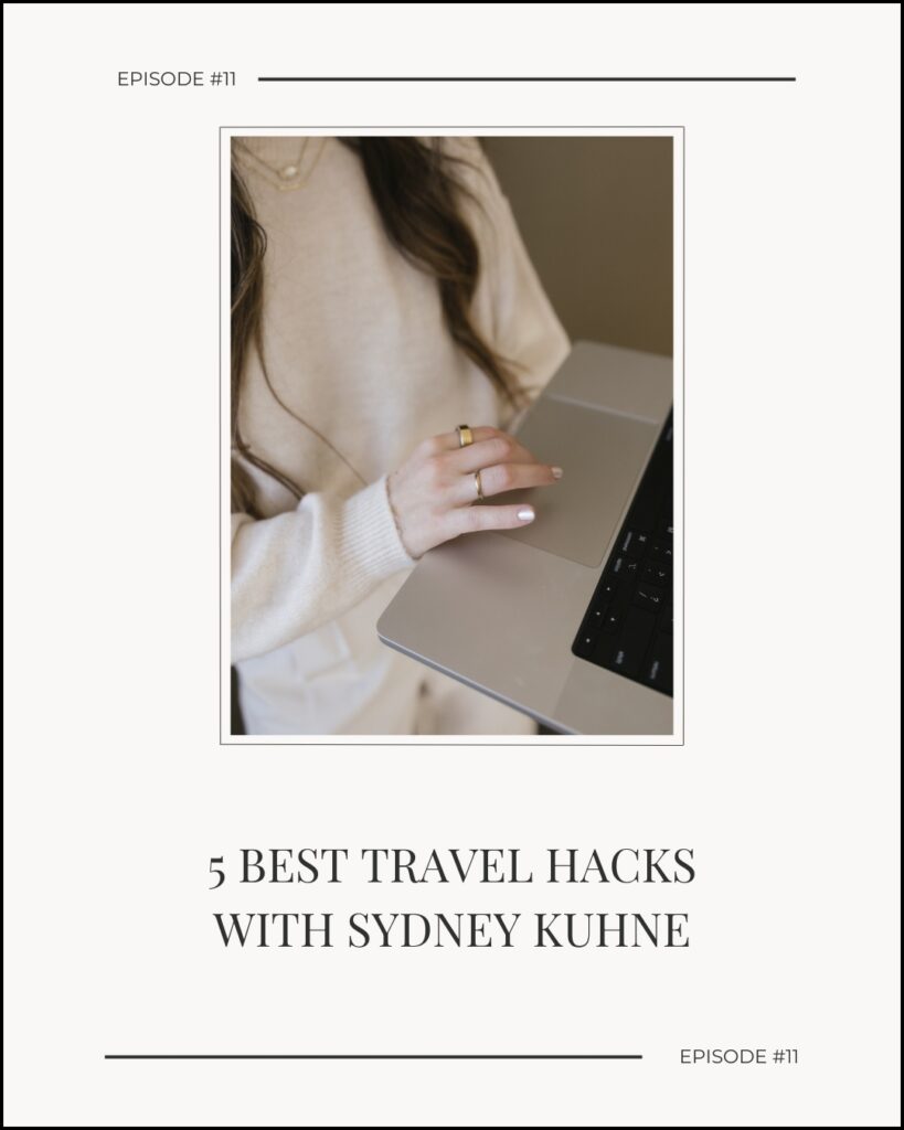 It’s so great to be back and podcasting! Sydney DOES NOT hold back on travel hacks, tips + tricks. She goes into SO much more detail of these tips and real world examples in the episode. If you want to hear all she has to say, I would highly, highly recommend listening in. Travel is such a passion of mine and Sydney’s and we are pumped to give you all these tips! If you’ve been wanting to get into travel more or just want to travel more in this coming year, this episode is for you, my friend. Sydney has been all over and shares all her travels and destination specific tips on her instagram. If you are dying for even more information from her, head to her Instagram!